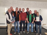 Nach der Versammlung stellte sich der Vorstand mit den Jubilaren zum Gruppenfoto. vl:
