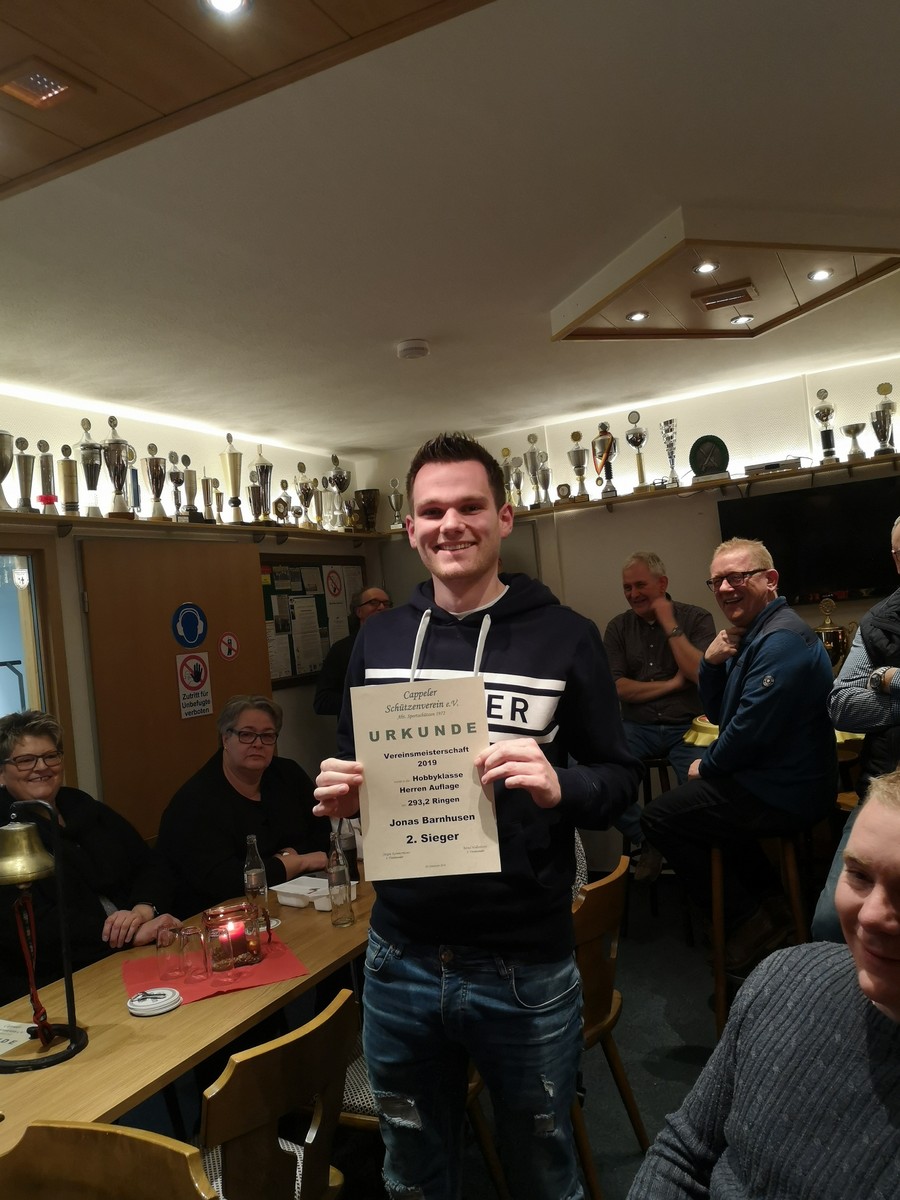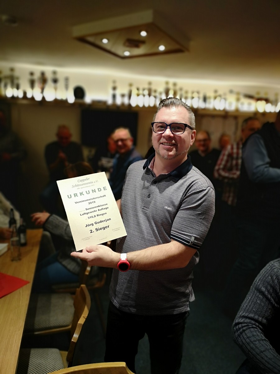 Der 1.Vorsitzende Jürgen Kammermann bedankte sich für das Zahlreiche Erscheinen der Sportschützen. Des Weiteren sprach der 1. Vorsitzende über die Herausforderungen der Cappeler Sportschützen im Jahr 2019 und dann die doch so positiven Ziele ! Nun stand die Siegerehrung des Vereinsmeisterschaft Schießen der LG + LP auf dem Programm, die an drei Tagen im Dezember 2019 ausgetragen wurden. Der 1.Vorsitzende Jürgen Kammermann konnte folgende Vereinsmeister 2019 auszeichnen: